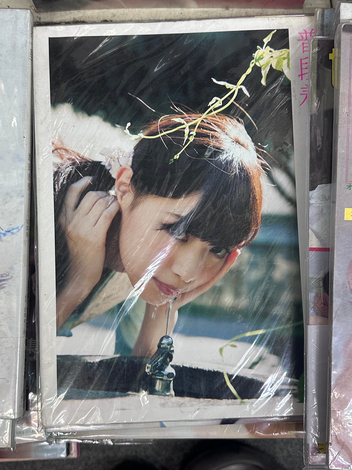 When it seemed like he was finishing, I told him I wanted to look at old books in Jimbocho. We went to three shops. The whole time I knew that he wanted to be outside, smoking or writing. In the last shop we went into, all of the books were photos of the same girl. Some were styled like porn but in most of them she just looked pretty. Posed in school clothes, a nurse’s outfit, a party dress, laughing by the water fountain with her friends.